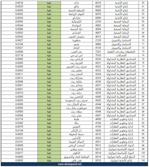 قائمة الأسهم النقية العصيمي