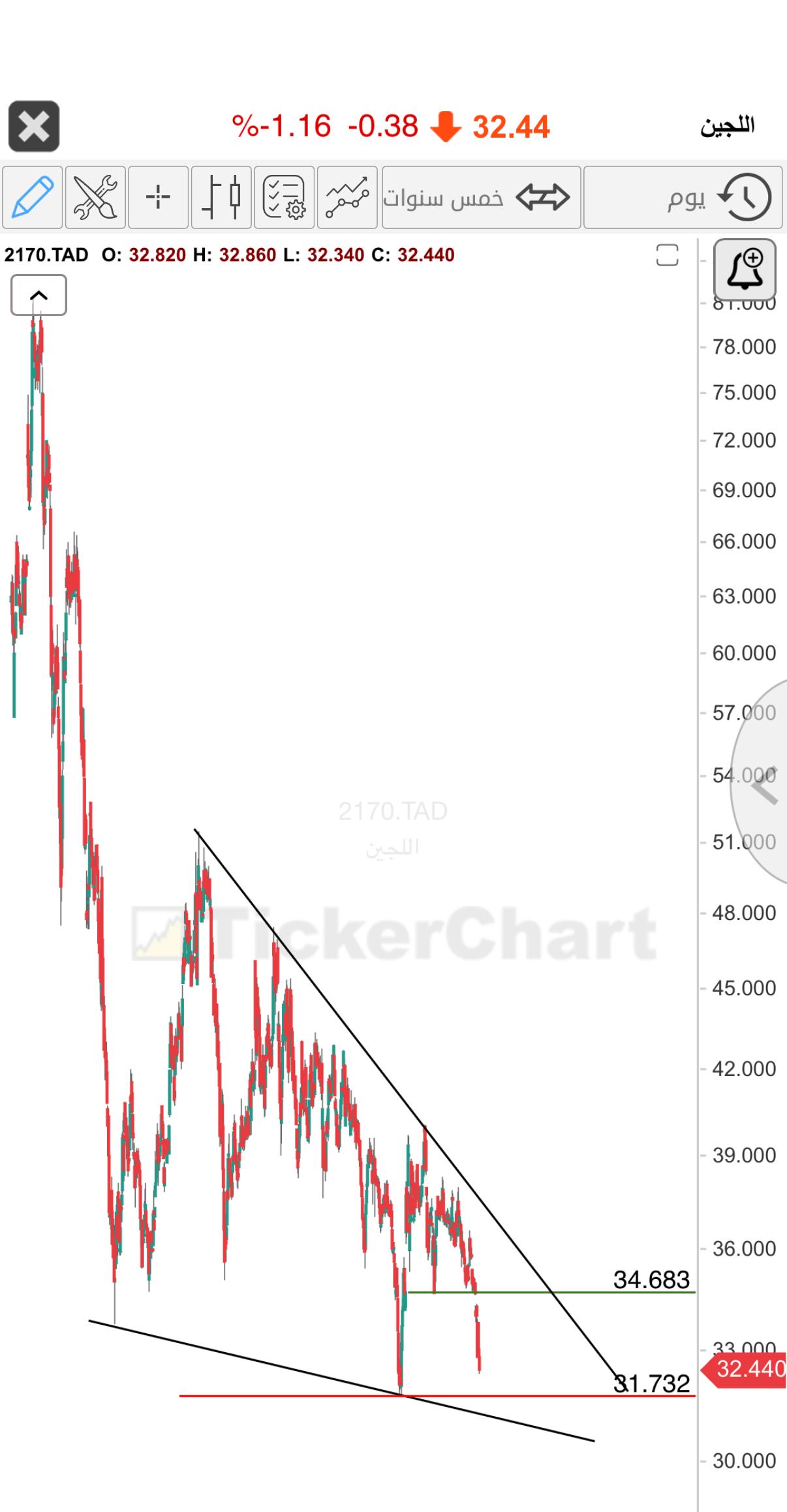 بس بين 32.40 وسعر 30 او مادونها فرق يقارب 7٪ وممكن اكثر ولاودك تجلس معاه متعلق وهو لم يسلك مسار صاعد بعد