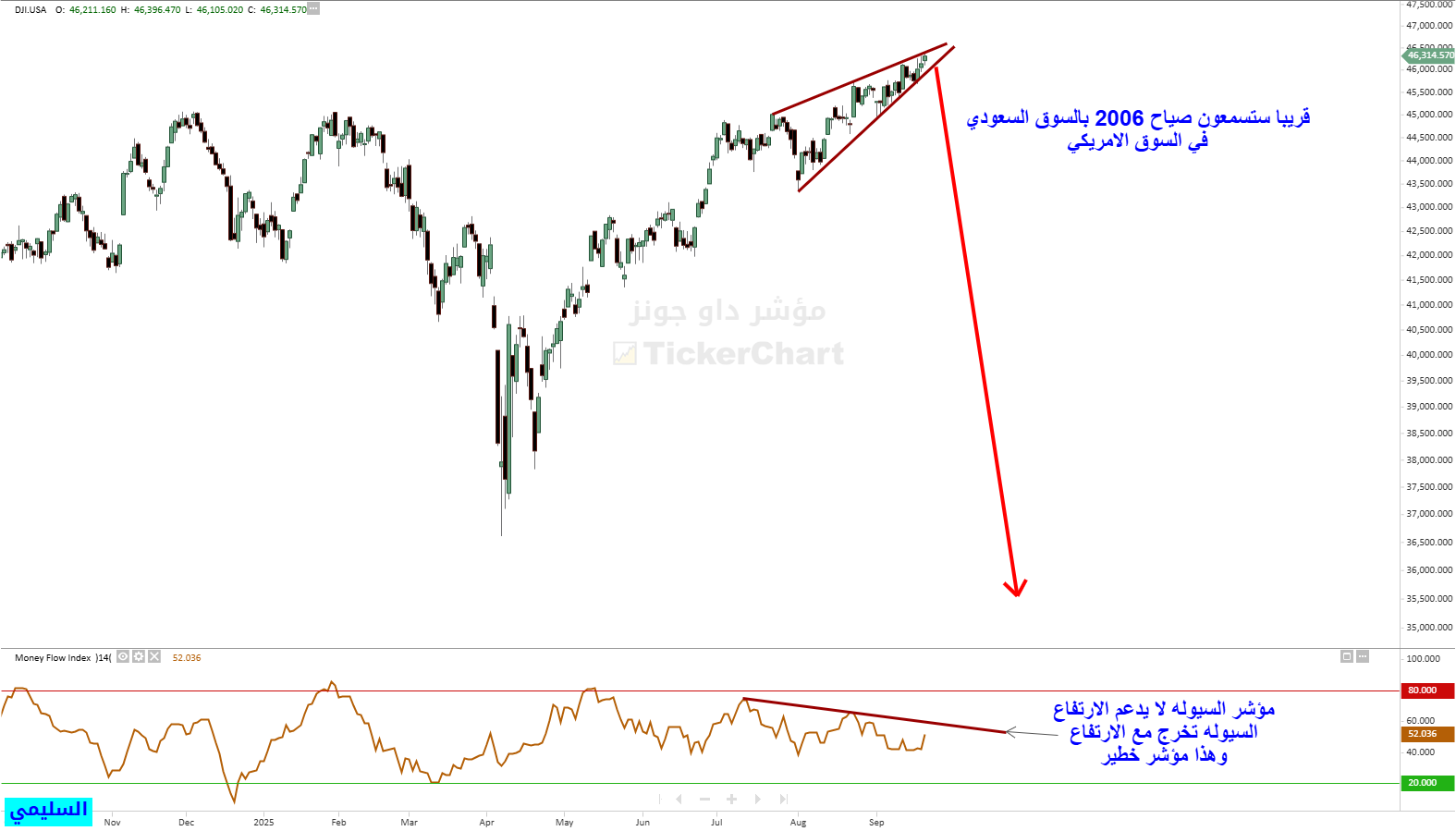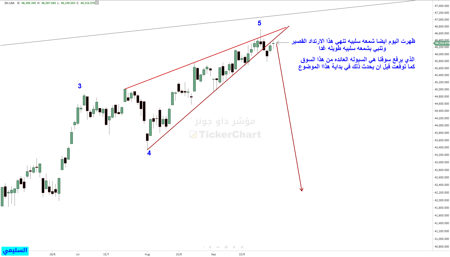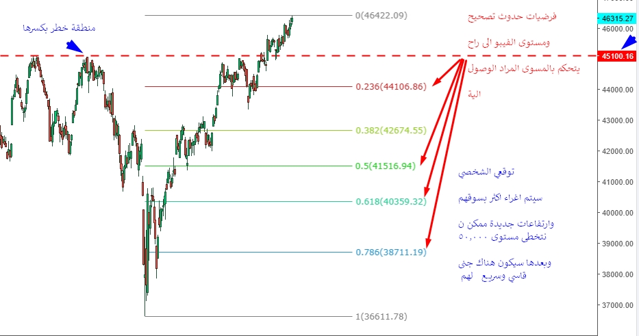 هذا التحليل يتفق مع تحليلي في ان الداو جونز قريب من التصحيح