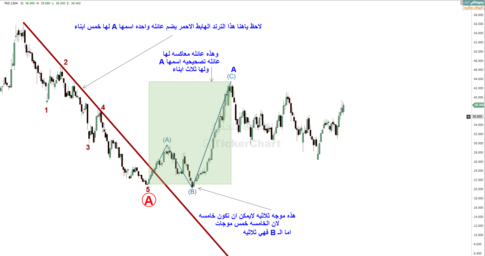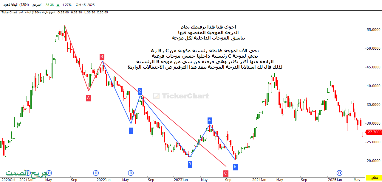 ثم نزول ليكمل موجته الخامسة الثلاثية من A , B , C