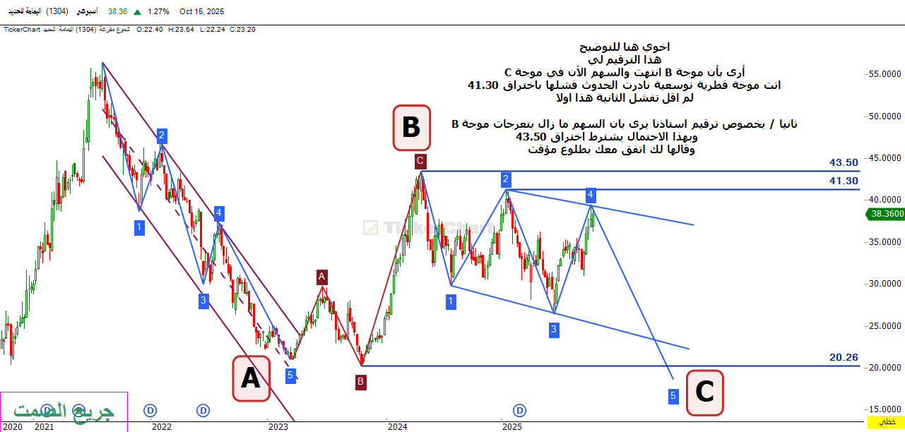 وهذا شارت أتوقع حركته القادمة لموجة A من الخامسة