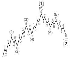 اليوت فصل في هذه الاتجاهات حيث اعطى الاتجاه الصاعد خمس موجات سمها الموجات الدافعه يقابلها اتجاه هابط بثلاث موجات سماها الموجات التصحيحيه