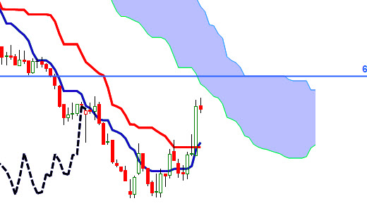 الاسعار تتحرك اعلي خطي التنكن والكنجسن لكنها اسفل السحابة مما تعطي تقييم جيد الي متوسط بسبب الحركة الهابطة الاسبوعية اسفل السحابة