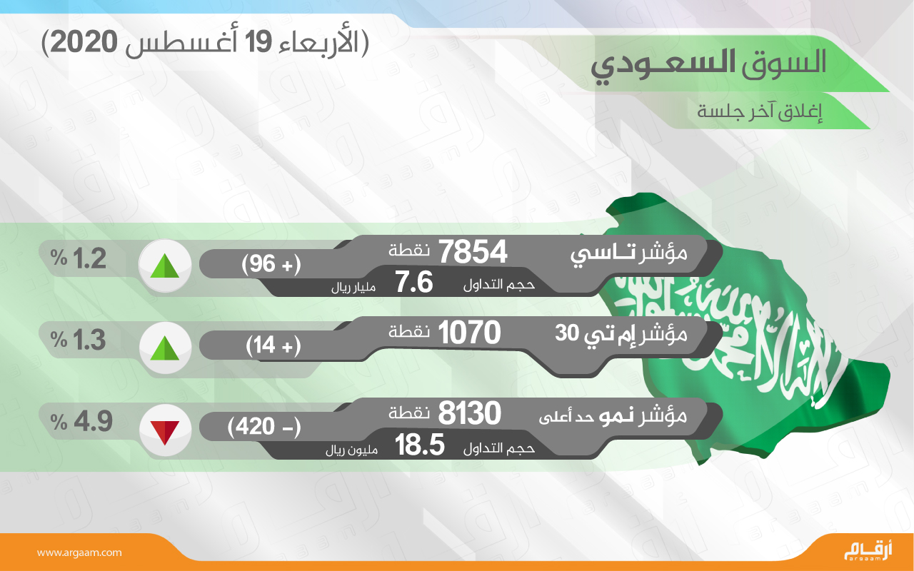 إغلاق السوق السعودي .. الأربعاء 19 أغسطس 2020 :