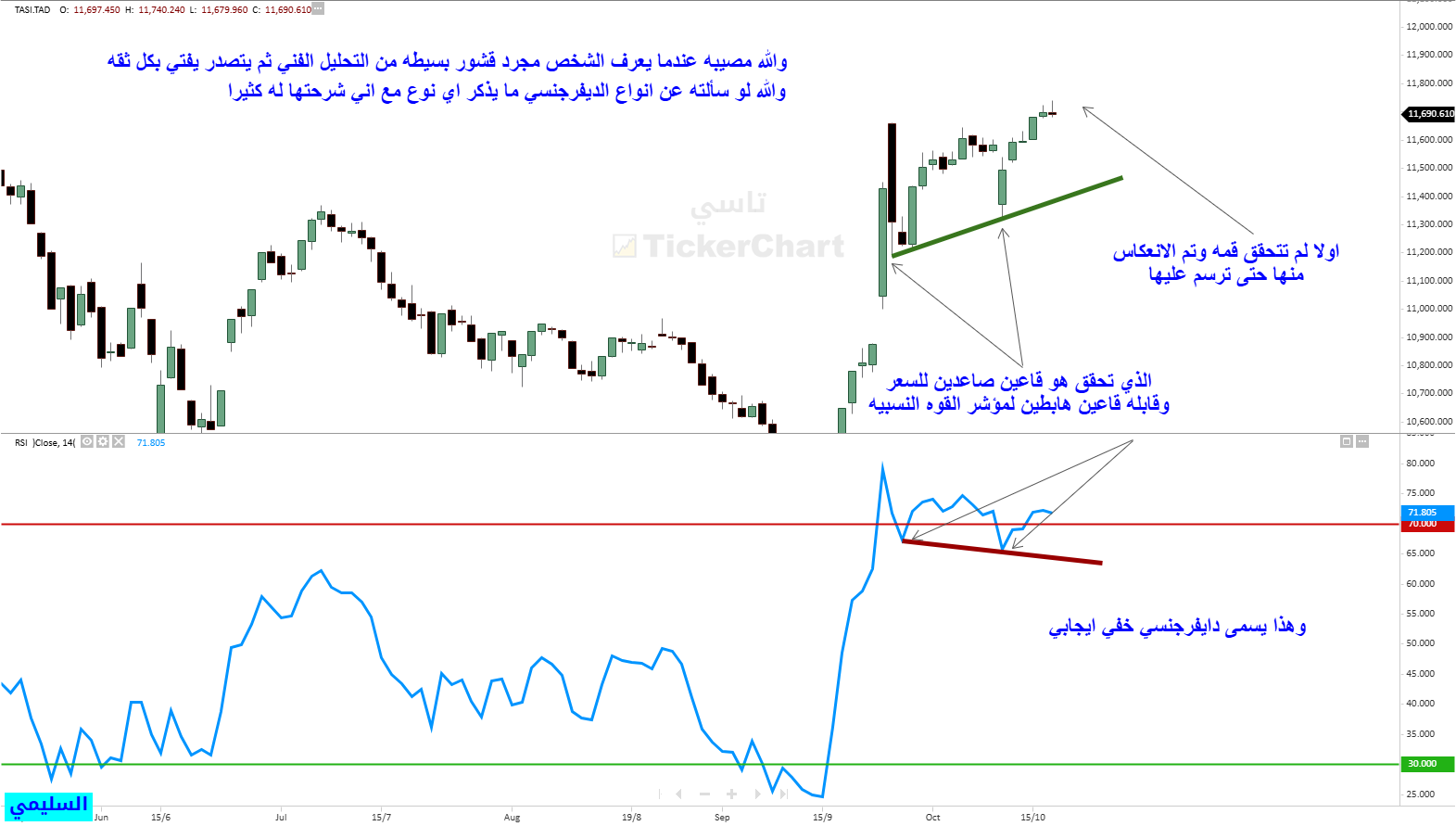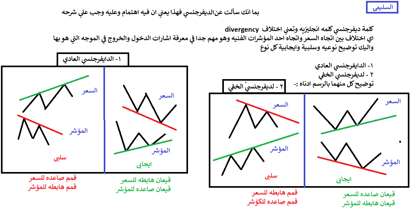 انت تعرف أن المؤشر يبنى على الاختلاف بين حركة السعر وحركة المؤشر بالعربي قمم سعرية مؤشر القوة لا يعطي مقابلها ذلك .. هذا يعني انعكاس بحركة السعر وبما أن الحركة صاعدة فعكسها حركة هابطة.