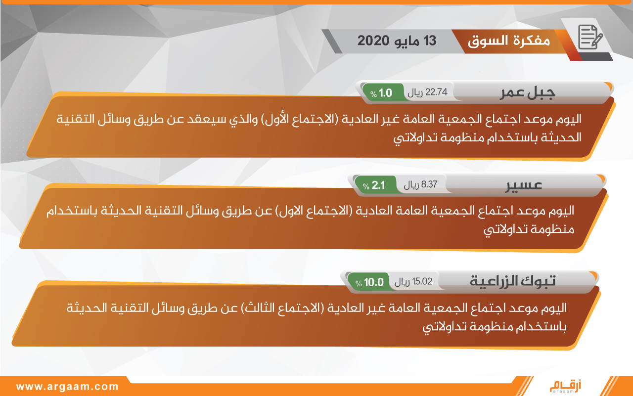 مفكرة السوق السعودي الأربعاء 13مايو 2020 :