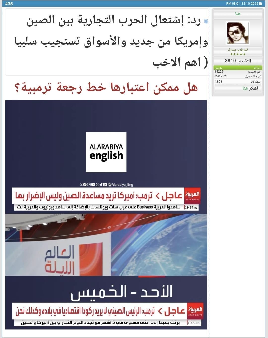وآخر توقع بهذا الموضوع ببداية الحرب التجارية الجديدة بين دولتين الحقيقة عقولهم اضنها فيها شي من المراهنات أو المراهقات المتأخرة