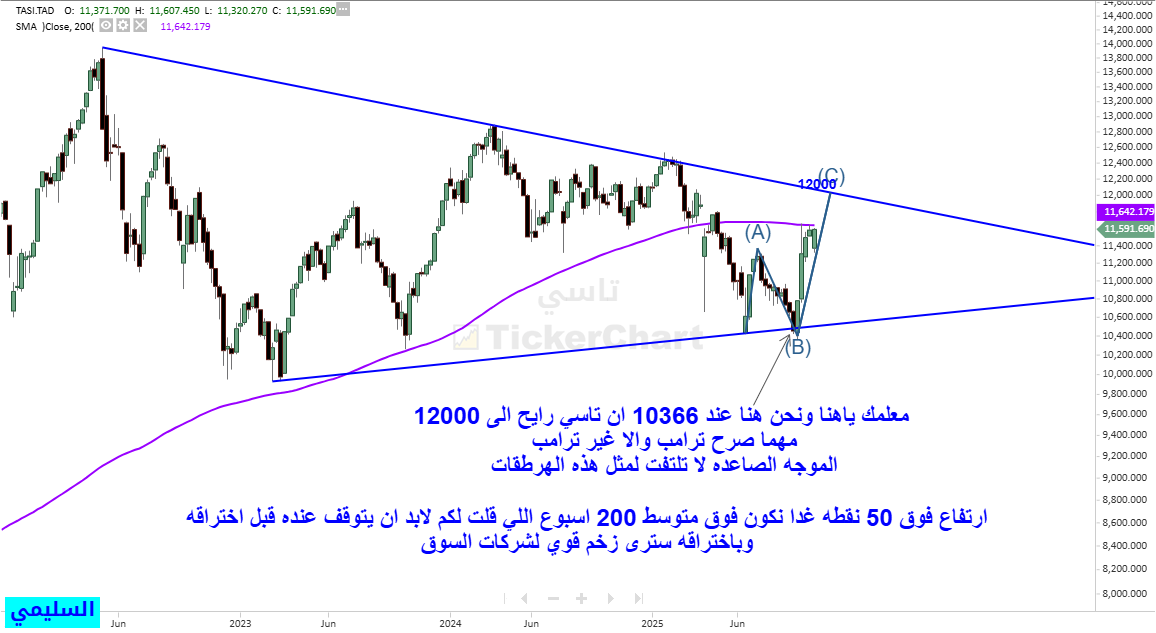 نتابع مايجري ومستوى 11661 بالغد ومابعدة ................. لدينا توقع واضح بالوصول الى 12000 من جديد وقريبا بمشيئة الله طبعا