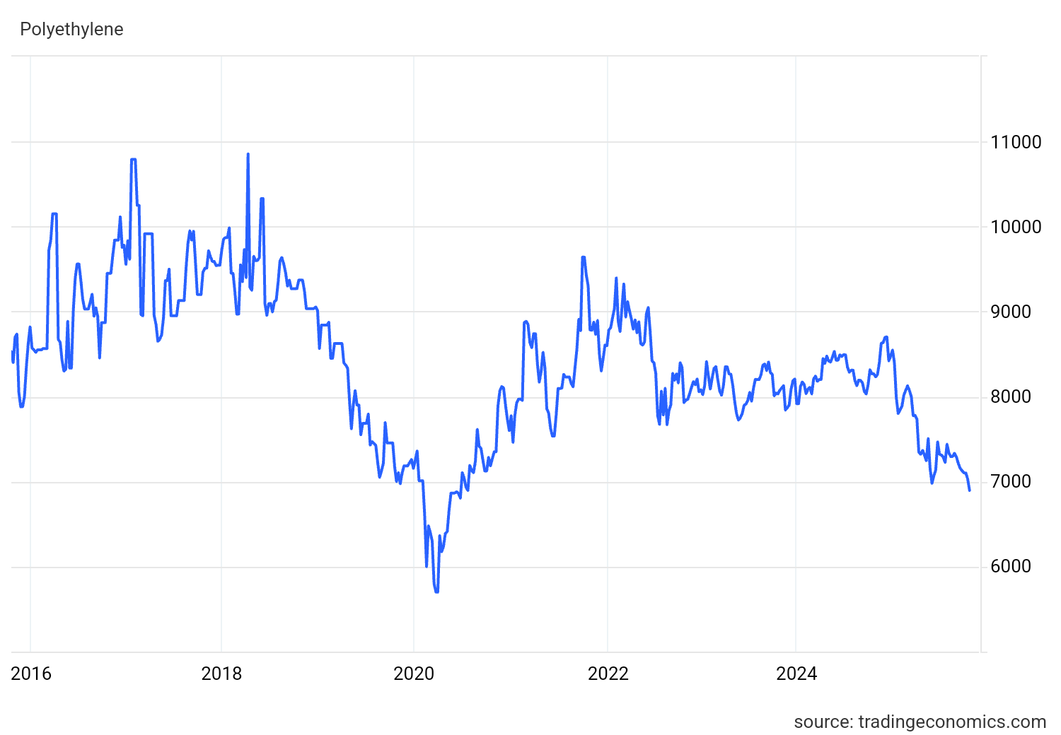 الآن أسعار البولي إيثلين في أدنى مستوياتها على الإطلاق لهذا العام 2025