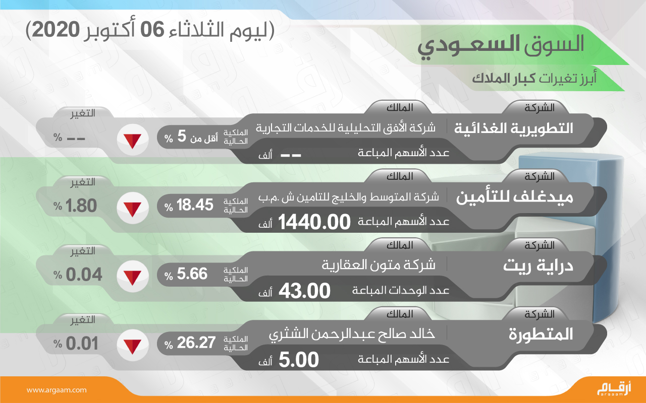 ملخص السوق المالية لهذا اليوم الثلاثاء 6 أكتوبر 2020 :
