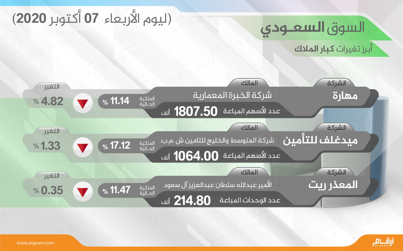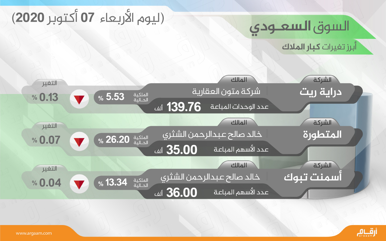 مؤشر السوق السعودي إغلاق آخر جلسة وأبرز تغيرات كبار الملاك :
