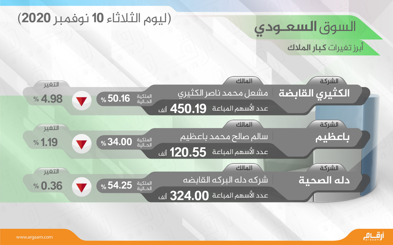 مؤشر السوق السعودي إغلاق آخر جلسة وأبرز تغيرات كبار الملاك :