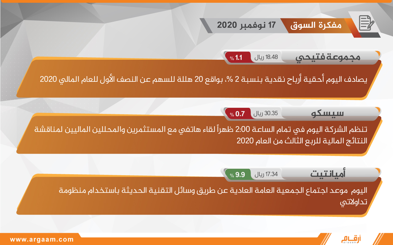 مفكرة السوق السعودي .. الثلاثاء 17 نوفمبر 2020 :
