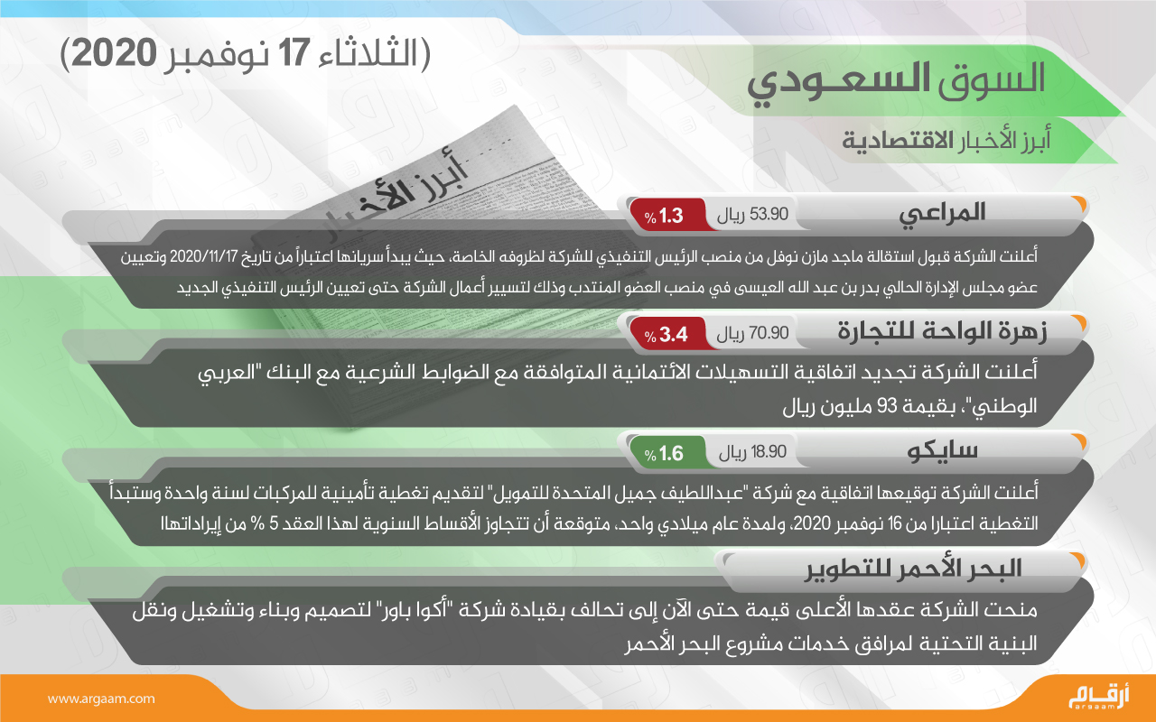 أبرز أخبار السوق السعودي .. الثلاثاء 17 نوفمبر 2020 :