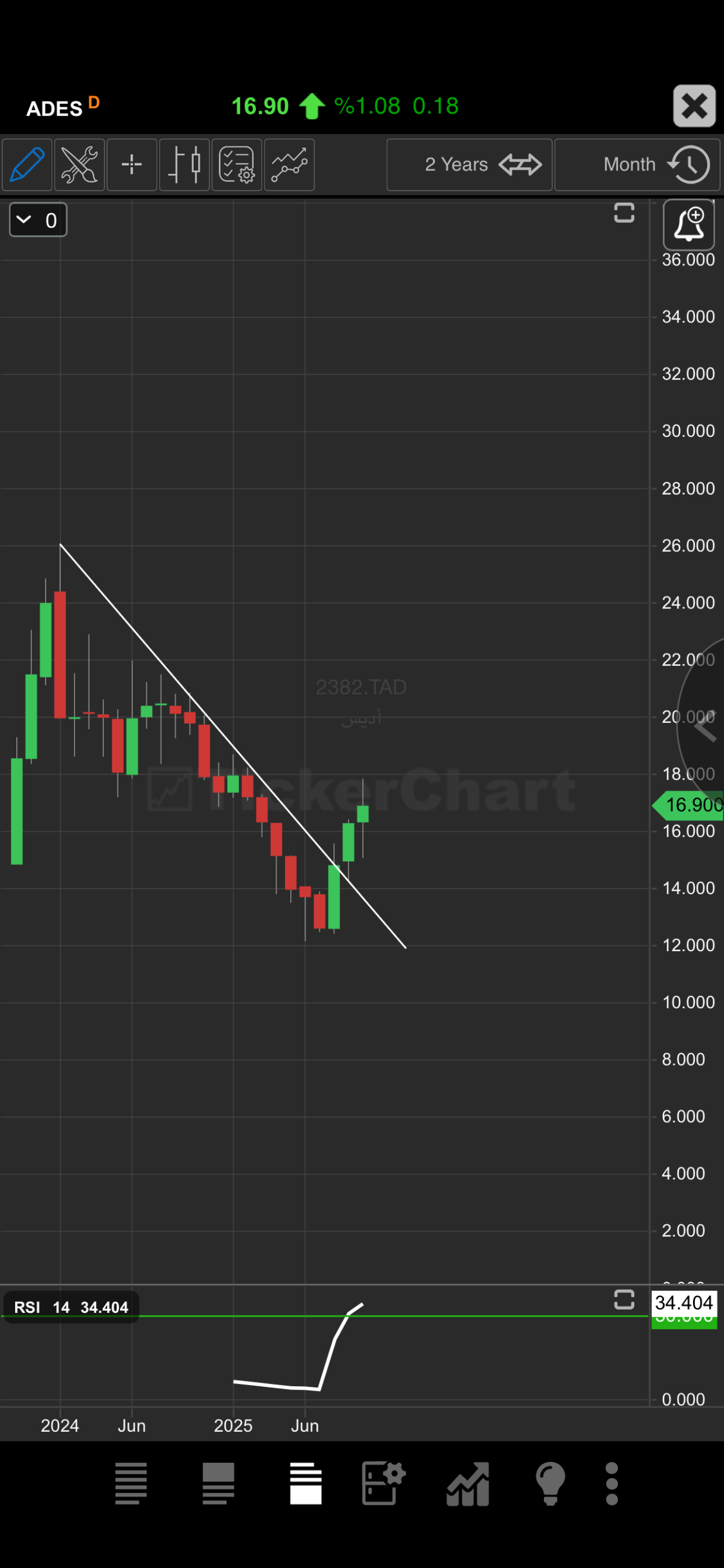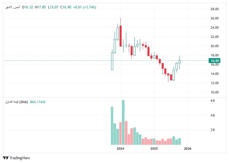 السهم قبل اربع وخمس شهور حقق القاع وارتد وهذا الشهر الثالث متصاعد والاحد فتتاح الشهر الرابع وانتوا طيبين والسهم صحح من قمته 50 بالمية وارتد حول 30 بالمية