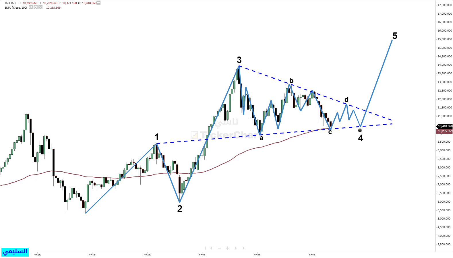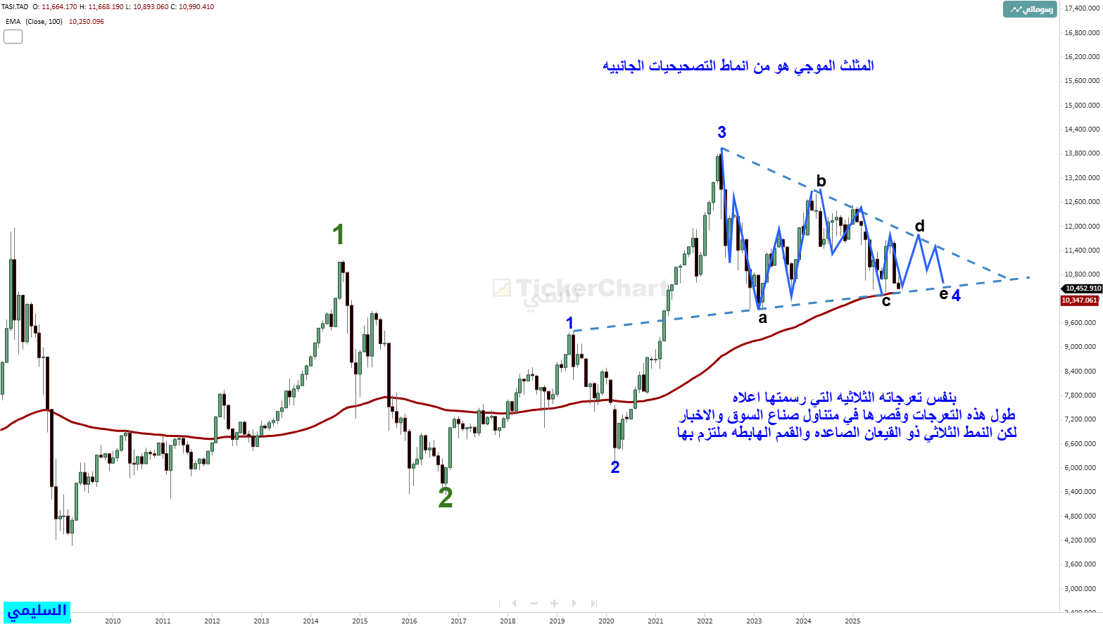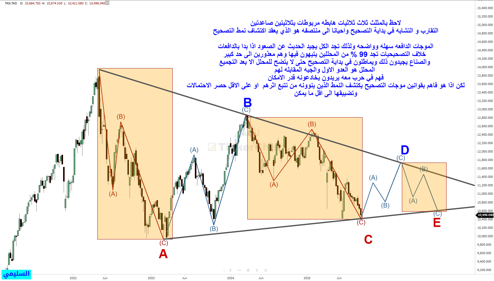 انا قلت منذ سنتين ونصف ان المؤشر اخذ تصحيح المثلث وهو تصحيح جانبي فوق 9930 وقلت انه لن يكسرها وسيتذبذب فوقها الى ان ينهي تصحيحيه ومنذ ذلك الحين لم بكسرها