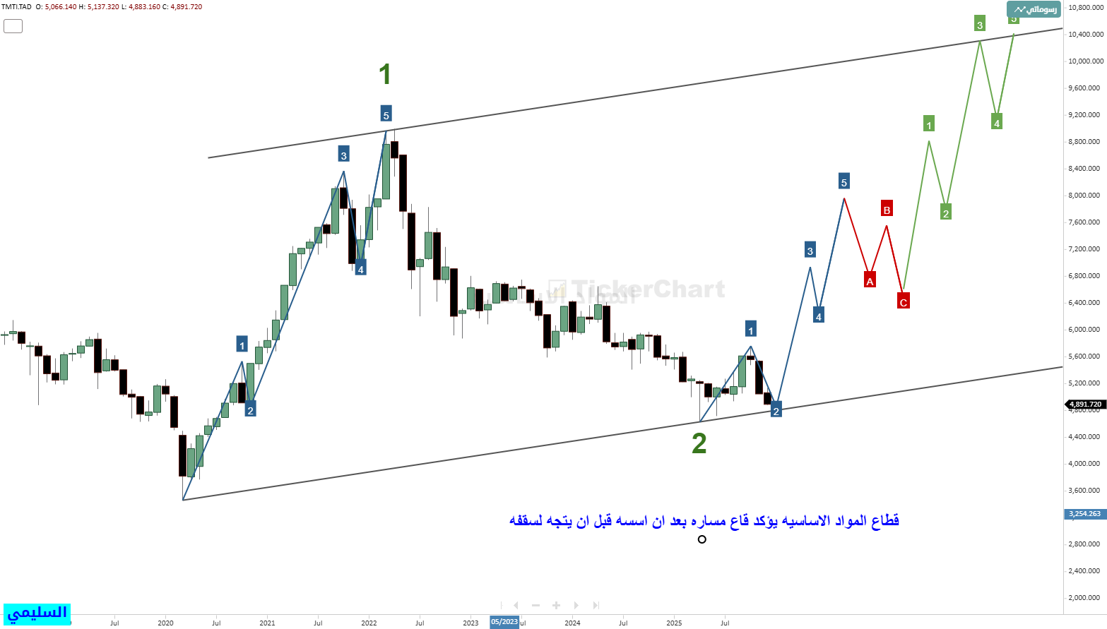 قبل كذا اوردة شارت المواد الأساسية ان تصحيحها في موجة ثانيه وواضح من حدة نزولها الان والبنوك في موجة رابعه عرضيه وهي من يشكل موجة المؤشر الان نرجو تحديث قطاع المواد الأساسية وشكرااا