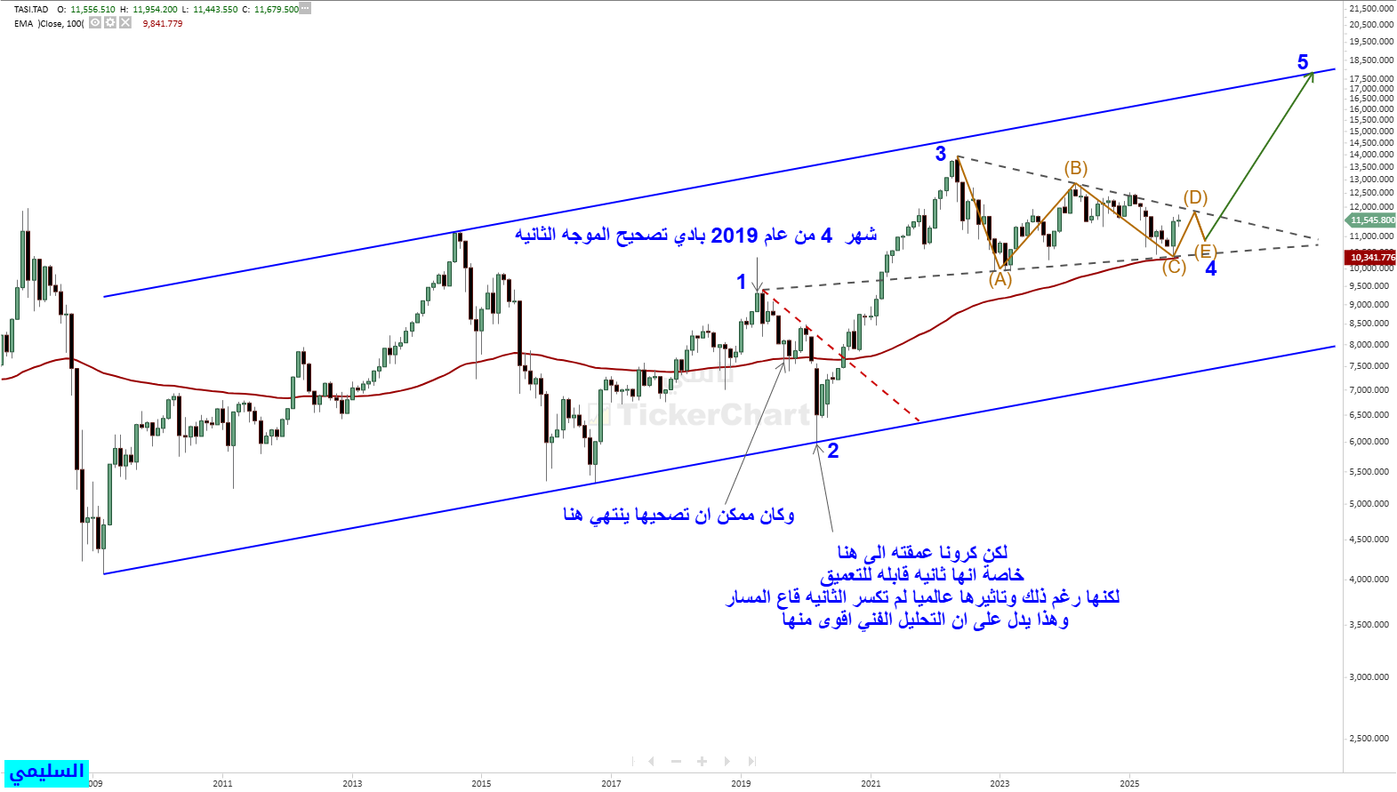 اليك شارت تاسي محدد عليه ازمة كرونا التي اتت وتاسي في موجته الثانيه الهابطه
