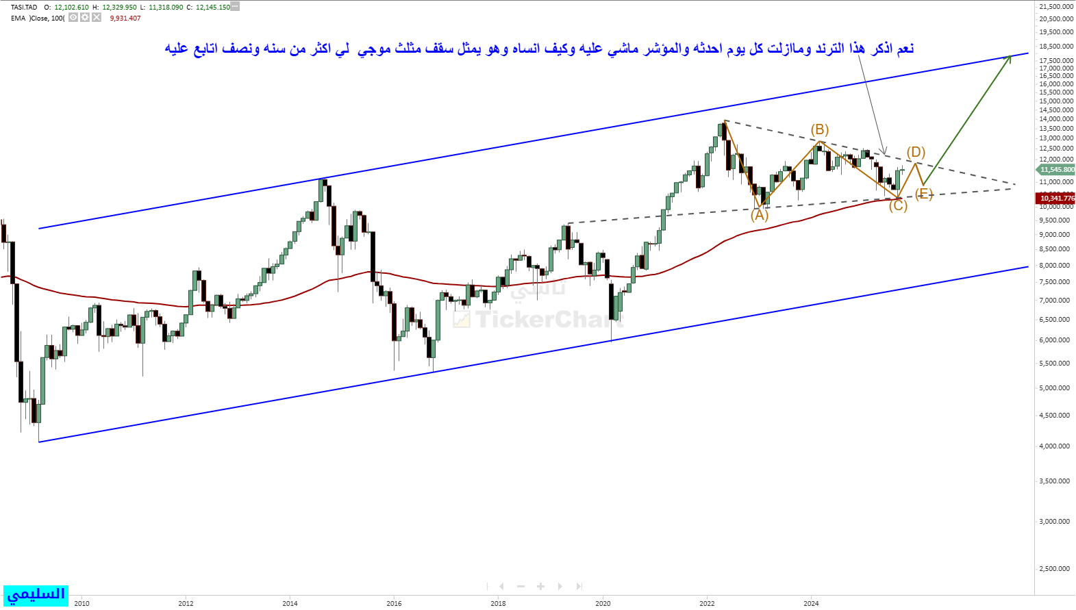 نعم اذكر هذا الترند وماازلت كل يوم احدثه والمؤشر ماشي عليه وكيف انساه وهو يمثل سقف مثلث موجي لي اكثر من سنه ونصف اتابع عليه