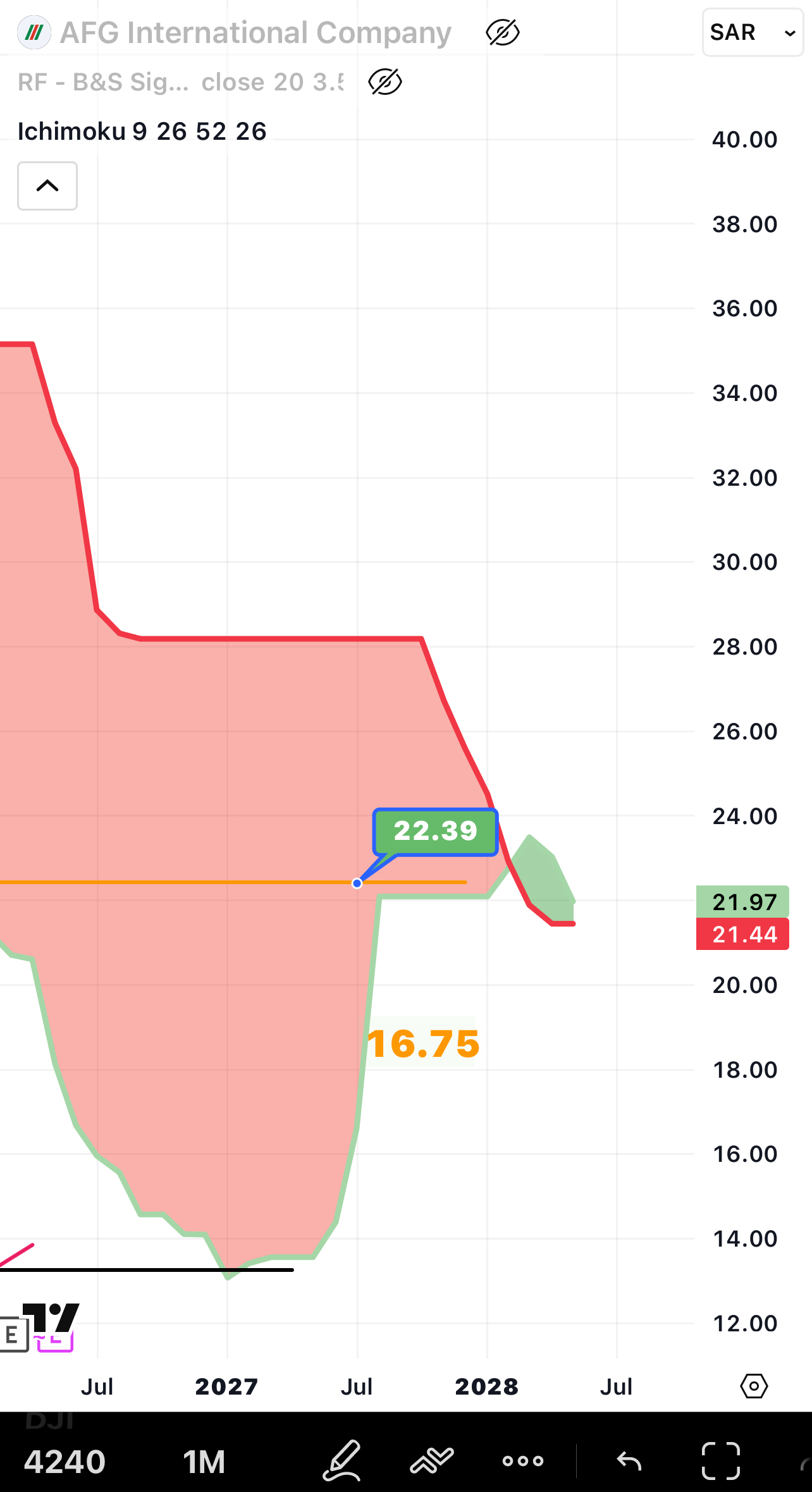 بعدها لم تتشكل سحابة ايجابية ابدا الان لدينا تقاطع ايجابي وتشكيل سحابة خضراء