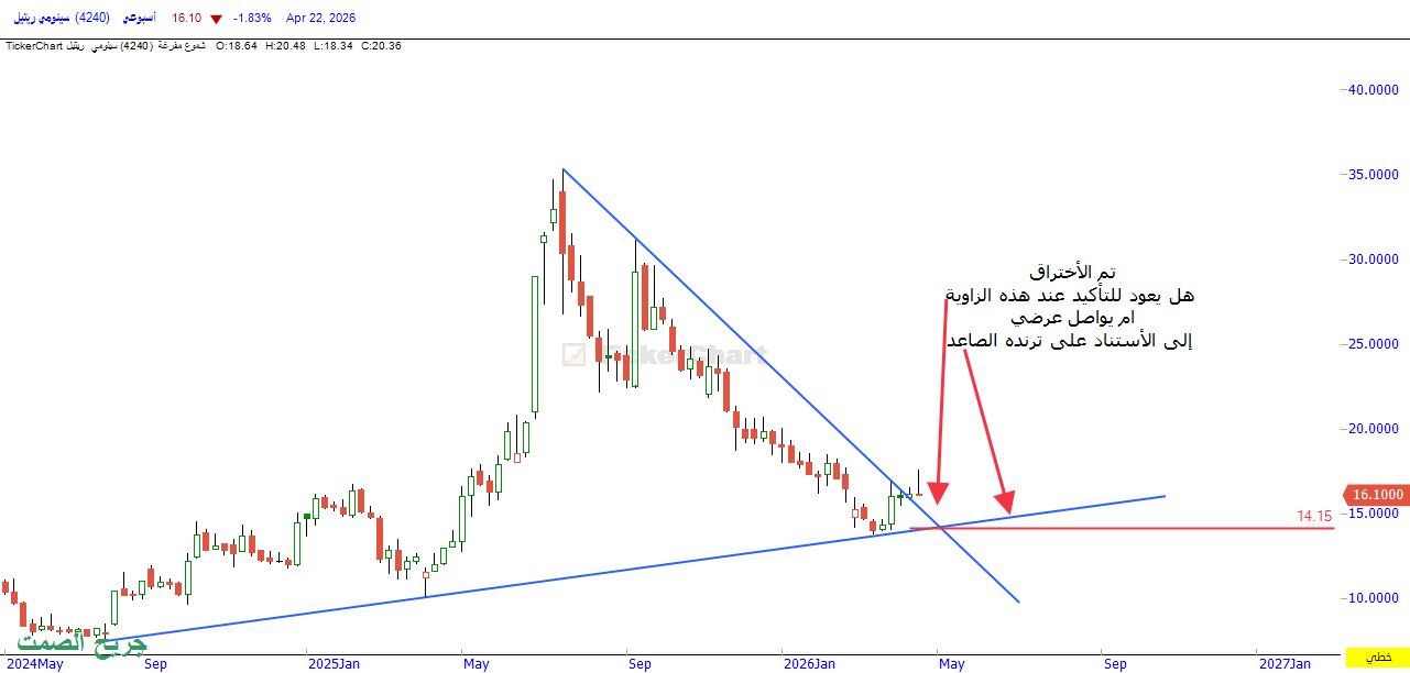 السهم اذا تجاوز ال 15.75 يذهب بنا باذن الى الى ال 18