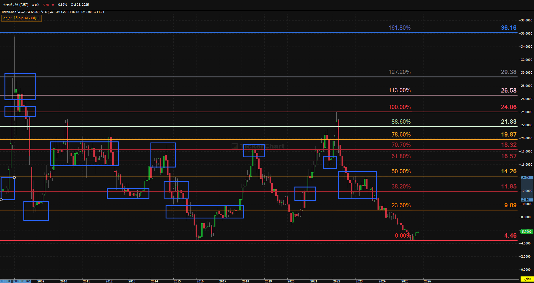 أعتقد أن صانع السهم من بداية نزوله من قمة 24.06 كان قد حدد قاع السهم عند 4.46 و رسم الفيبو مسبقا