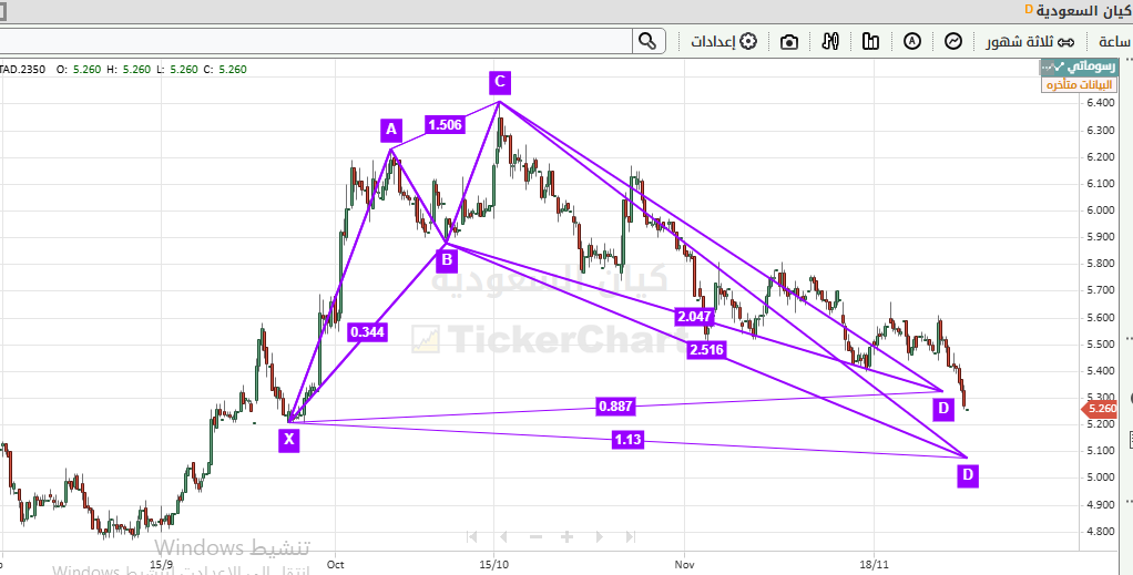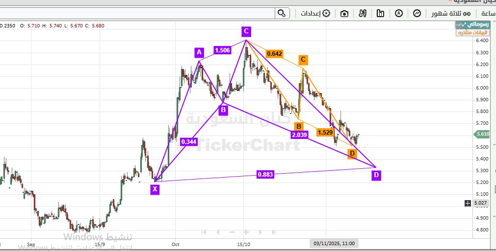 مع دخول السهم لخانة 5.33 تكون نموذج هارمونيك القرش ومسموح امتداده حتى 5.07