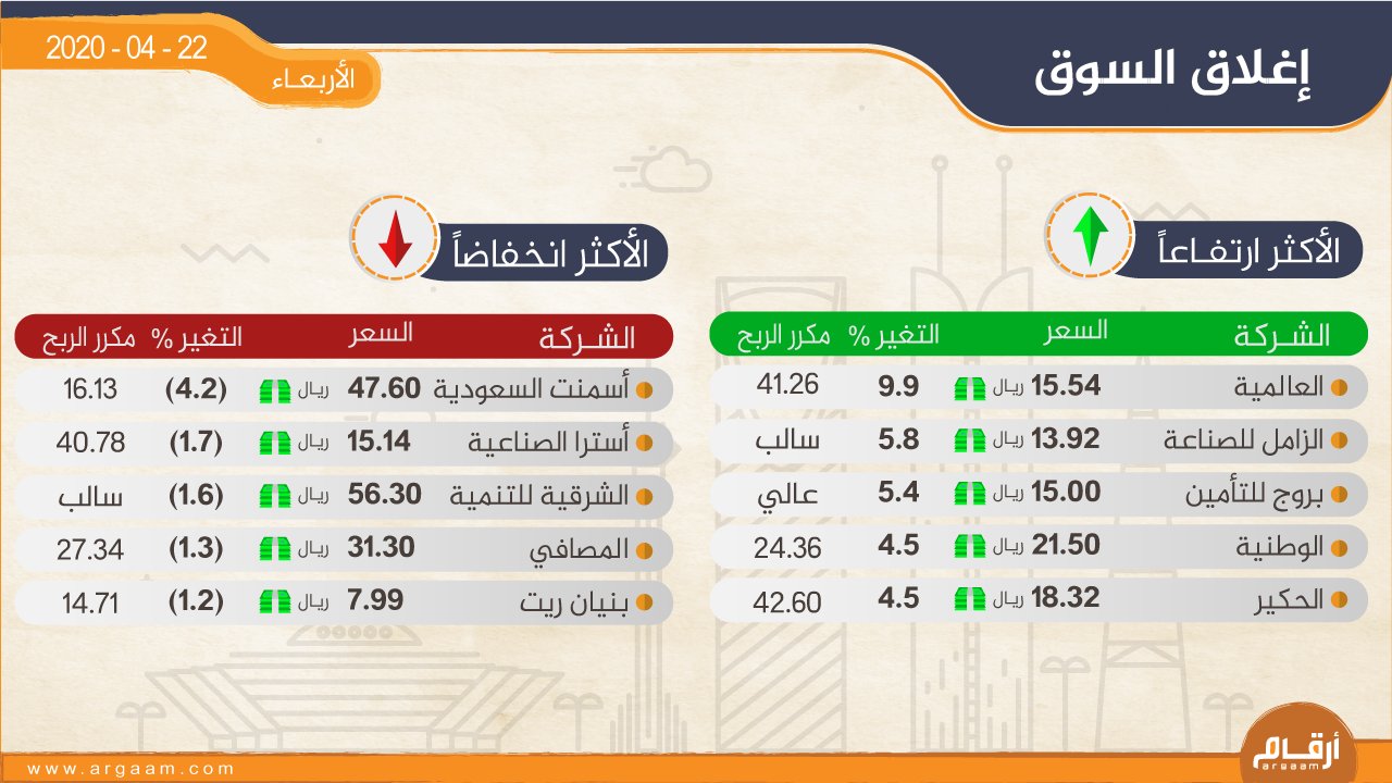 إغلاق السوق السعودي ... الأحد 26 أبريل 2020