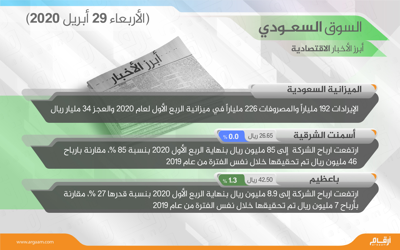 أبرز أخبار السوق السعودي والأخبار الاقتصادية .. الأربعاء 29 أبريل 2020 :