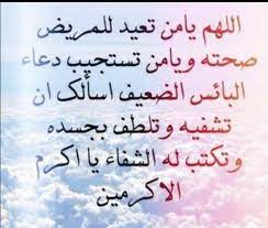 اللهم ألبسه لباس الصحة والعافية واشفه شفاء لا يغادر سقما