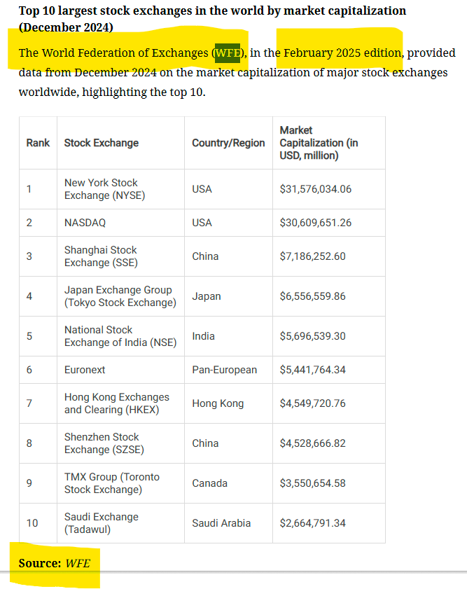 الصحافة العالمية تناقلت قبل كم شهر تقرير الاتحاد العالمي للبورصات ( جهة عالمية ) - على فكرة هذه المعلومة اخذتها من قوقل و بعد فحص وجدتها اكثر مصداقية