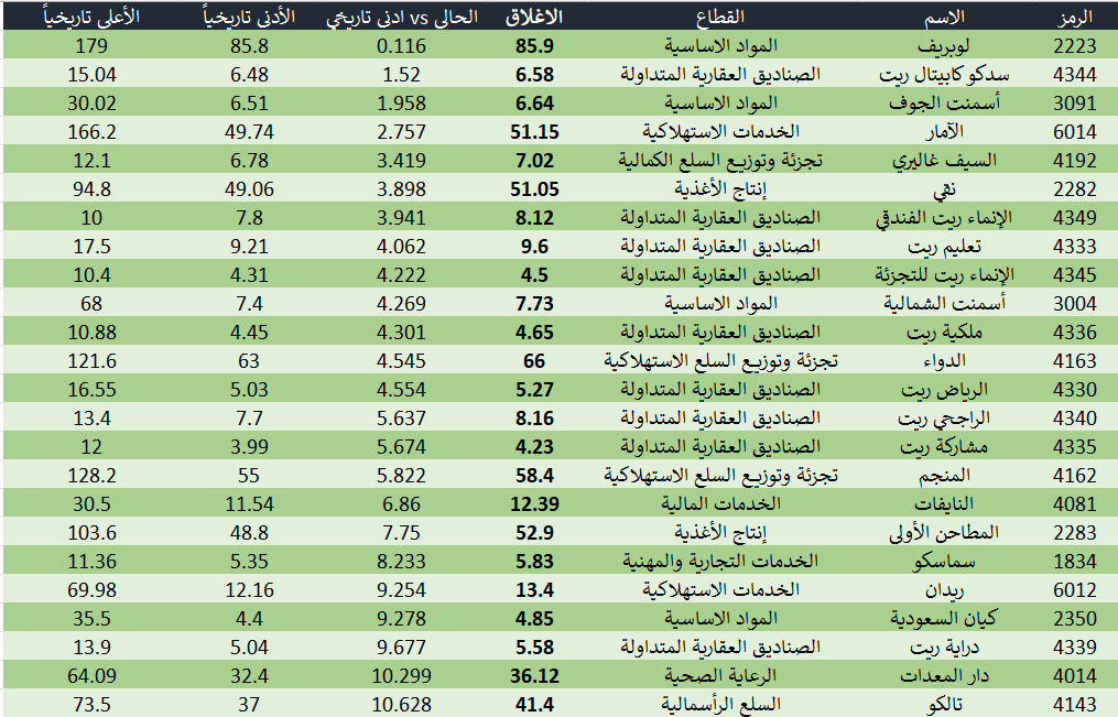 هذه قائمة الاسهم القريبة جدا من قيعانها التاريخية سواء التي سجلت مؤخرا او في فترة سابقة