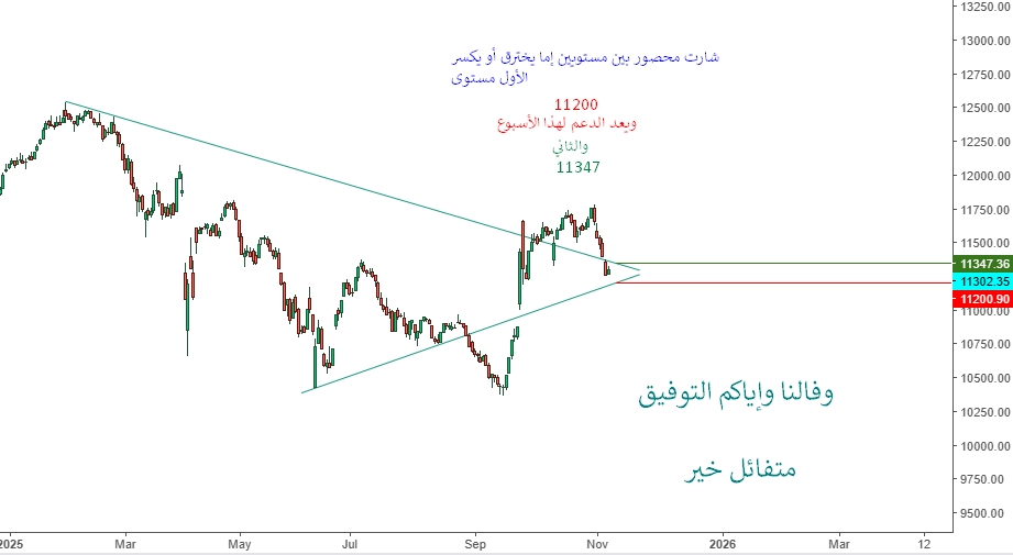 وهو المستوى المحوري لهذا الأسبوع بحيث لآ يكسر وبمشيئة الله يحافظ علية الى نهاية السنة التي بقي عليها قرابة شهر تقريبا