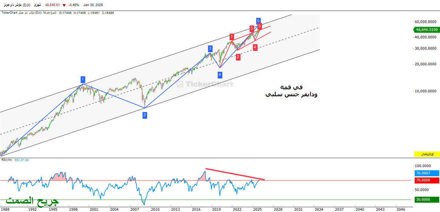 مؤشر داو جونز في قمة وكذلك الذهب في قمة إذا صدق التحليل أين ستتجه السيولة ؟؟؟