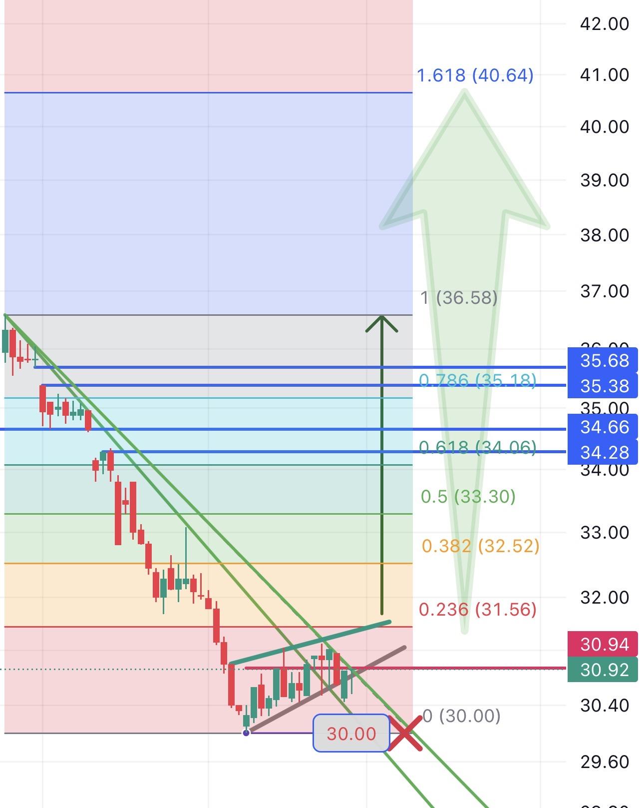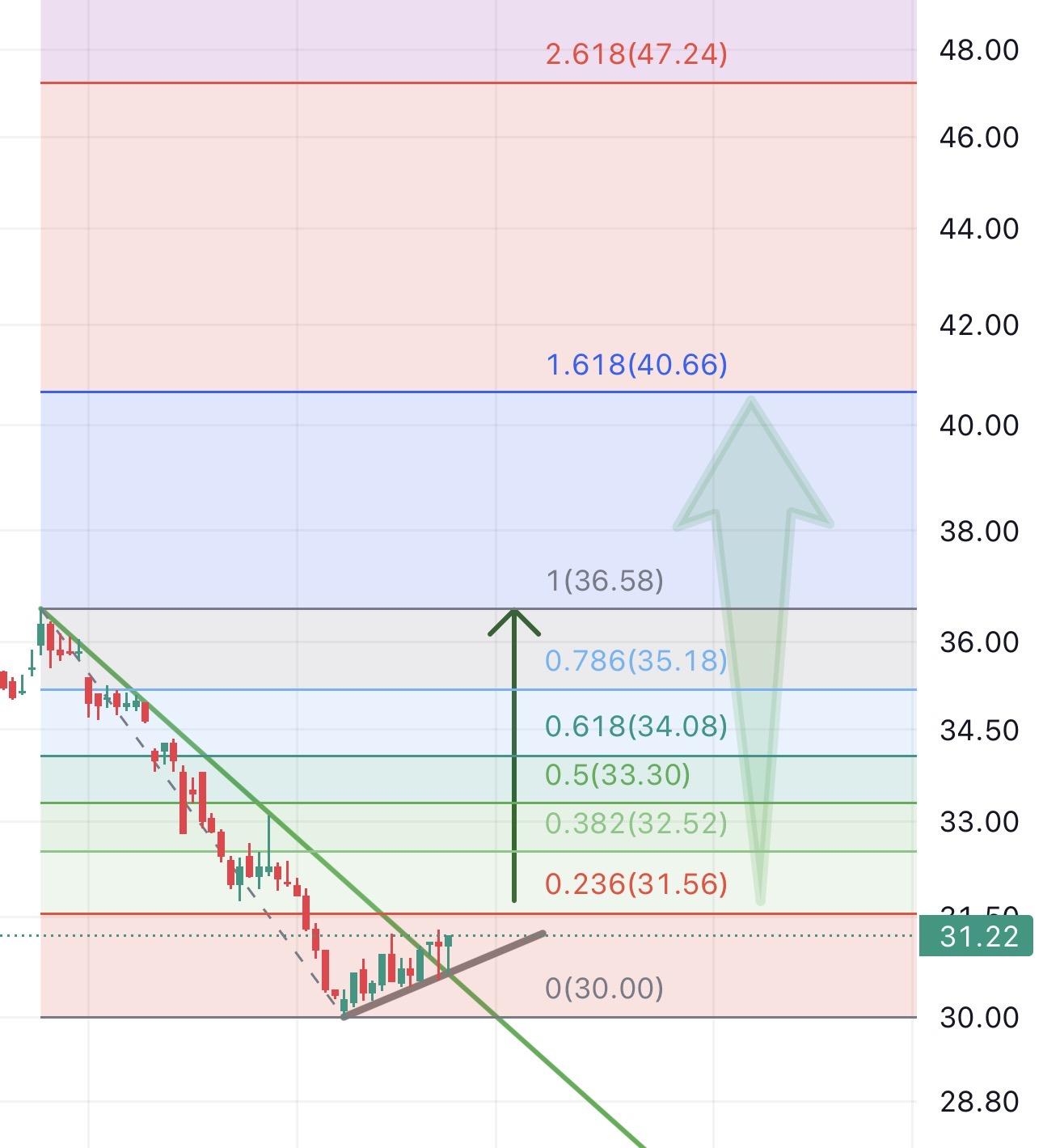 قد نرى هاي جديد على السهم بعد آخر قاع عند ال 30