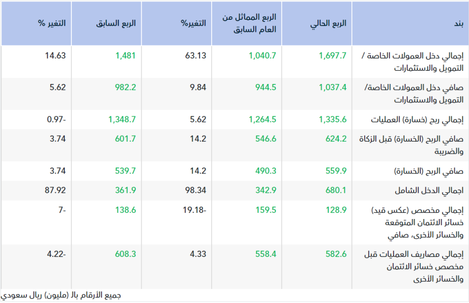 ط§ط±طھظپط¹ طµط§ظپظٹ ط§ظ„ط¯ط®ظ„ ظ†طھظٹط¬ط© ظ„ط§ط±طھظپط§ط¹ ط§ط¬ظ…ط§ظ„ظٹ ط¯ط®ظ„ ط§ظ„ط¹ظ…ظ„ظٹط§طھ ط¨ظ†ط³ط¨ط© 6ظھ طŒ ظˆط°ظ„ظƒ ظ†طھظٹط¬ط© ظ„ظ„ط§ط±طھظپط§ط¹ ظپظٹ طµط§ظپظٹ ط§ظ„ط¯ط®ظ„ ظ…ظ† ط§ظ„ظ…ظˆط¬ظˆط¯ط§طھ ط§ظ„ط§ط³طھط«ظ…ط§ط±ظٹط© ظˆط§ظ„طھظ…ظˆظٹظ„ظٹط©طŒ ظˆطµط§ظپظٹ ط§ظ„ظ…ظƒط§ط³ط¨ ظ…ظ† ط§ظ„ط§ط³طھط«ظ…ط§ط±ط§طھ ظˆط¯ط®ظ„ ط§ظ„ط¹ظ…ظ„ظٹط§طھ ط§ظ„ط£ط®ط±ظ‰. ظˆظ‚ط§ط¨ظ„ظ‡ط§ ط§ظ†ط®ظپط§ط¶ ظپظٹ ط¯ط®ظ„ ظˆط£طھط¹ط§ط¨ ط§ظ„ط¹ظ…ظˆظ„ط§طھ ظˆطھظˆط²ظٹط¹ط§طھ ط§ظ„ط£ط±ط¨ط§ط ظˆظ…ظƒط§ط³ط¨ طھطظˆظٹظ„ ط¹ظ…ظ„ط§طھ ط£ط¬ظ†ط¨ظٹط©.