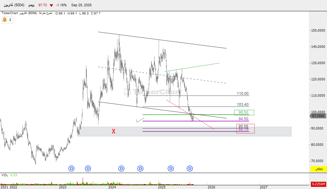 وفي حالة كاتريون اظن الفلات اتت قبل واتوقع الان انه في y والوجهه النهائيه منطقة الموجه 4 عند 85 ريال تقريبا
