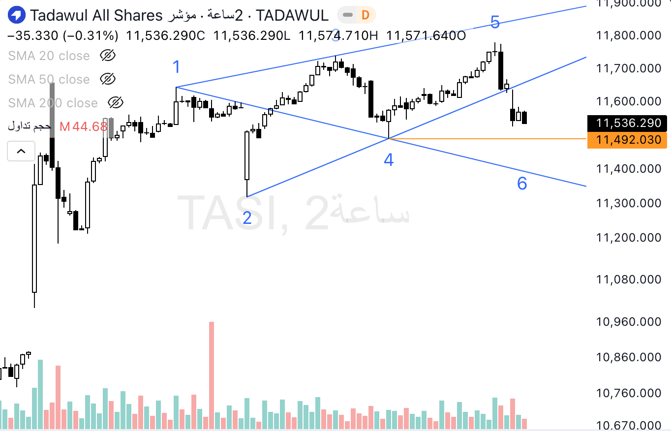 نعم احسنت اليوم ماهو متوقع له كسر مستوى 11500 من الافتتاح والهدف اتوقعة قاع شمعة اكتوبر