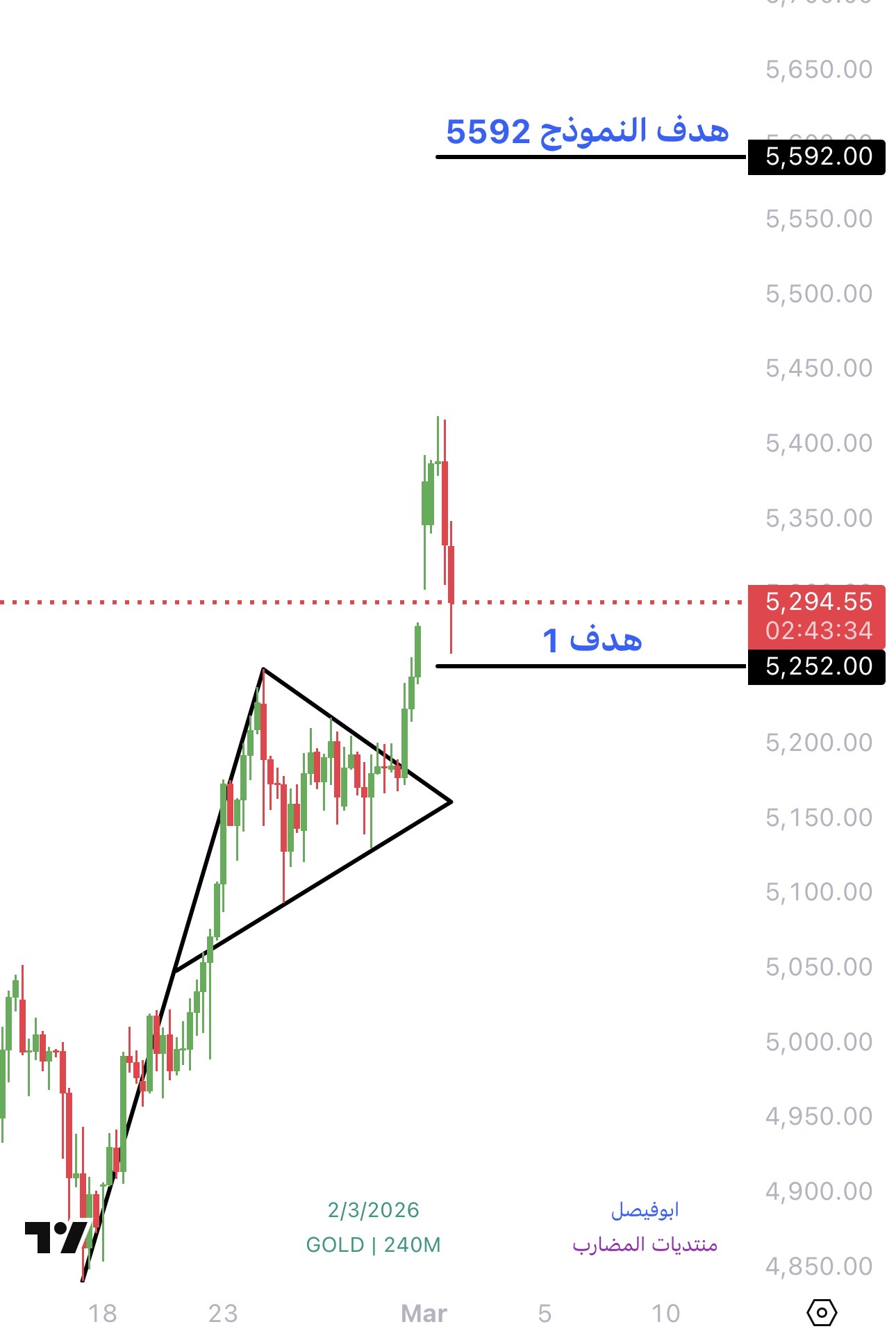 سعر الذهب الان 5171 وحسب النماذج المتكونة يستهدف 5327 ثم 5375 ويمكن تتكون نماذج لها اهداف ابعد