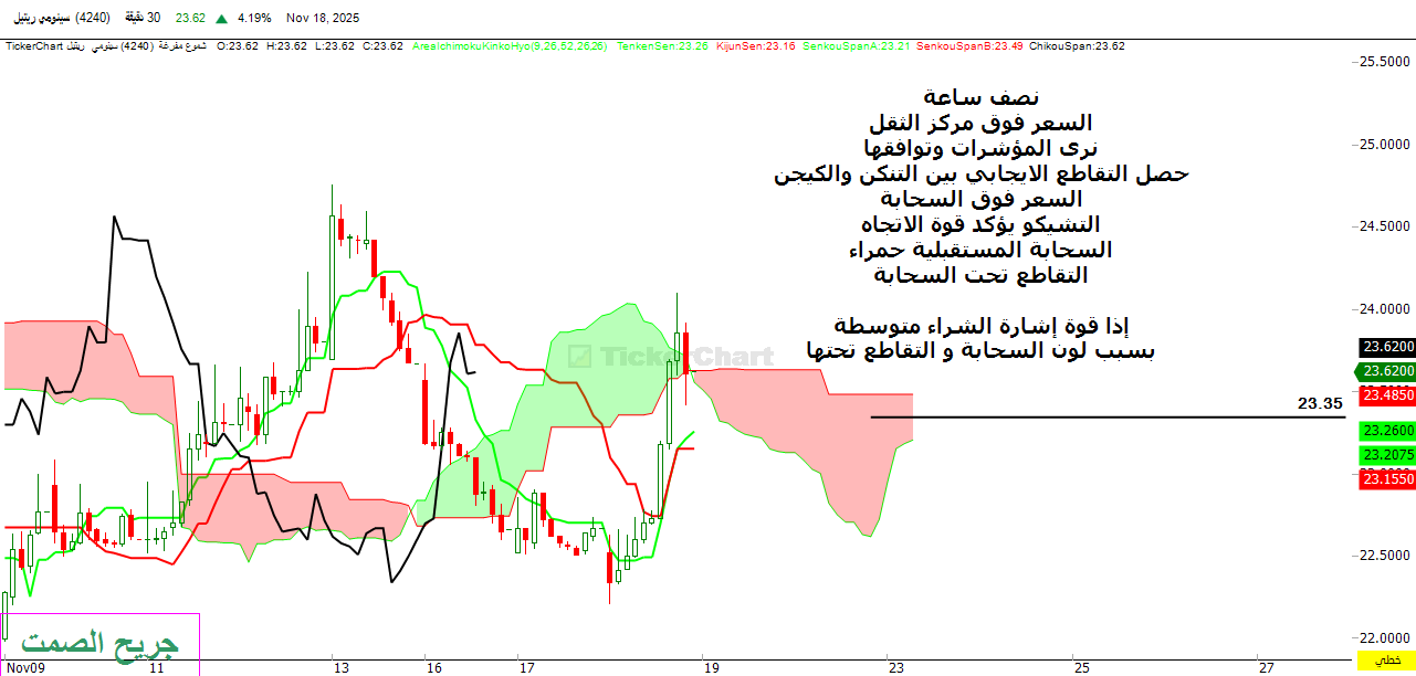 "السوق يخبرك ، والمشترين يدفعون بسخاء، والاتجاه الصاعد اذن ناخذ هدفنا اللحظي من الفاصل الربع ساعه السهم يقول انا مستعد للصعود