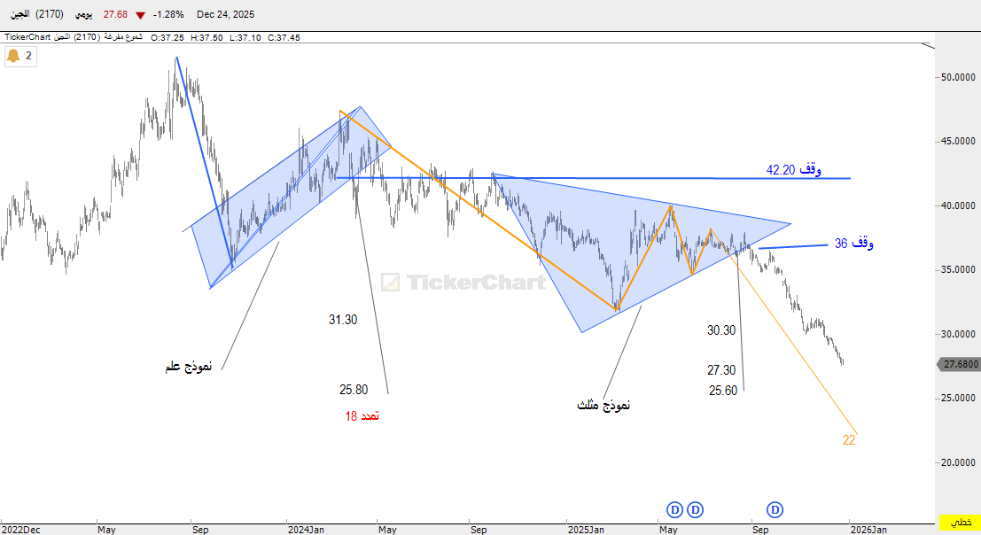 النتموذج اتلثاتني مثلث بوقف 36 وسابق حذرت منت 38 وله ثلاث اهداف يقترب الهدف الثاني 27.30 الان 27.66