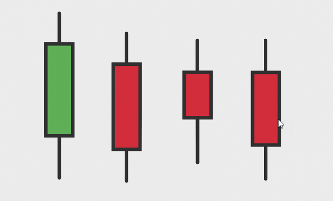  شمعة 3 (حمراء صغيرة): تردد وضعف في الزخم البيعي.