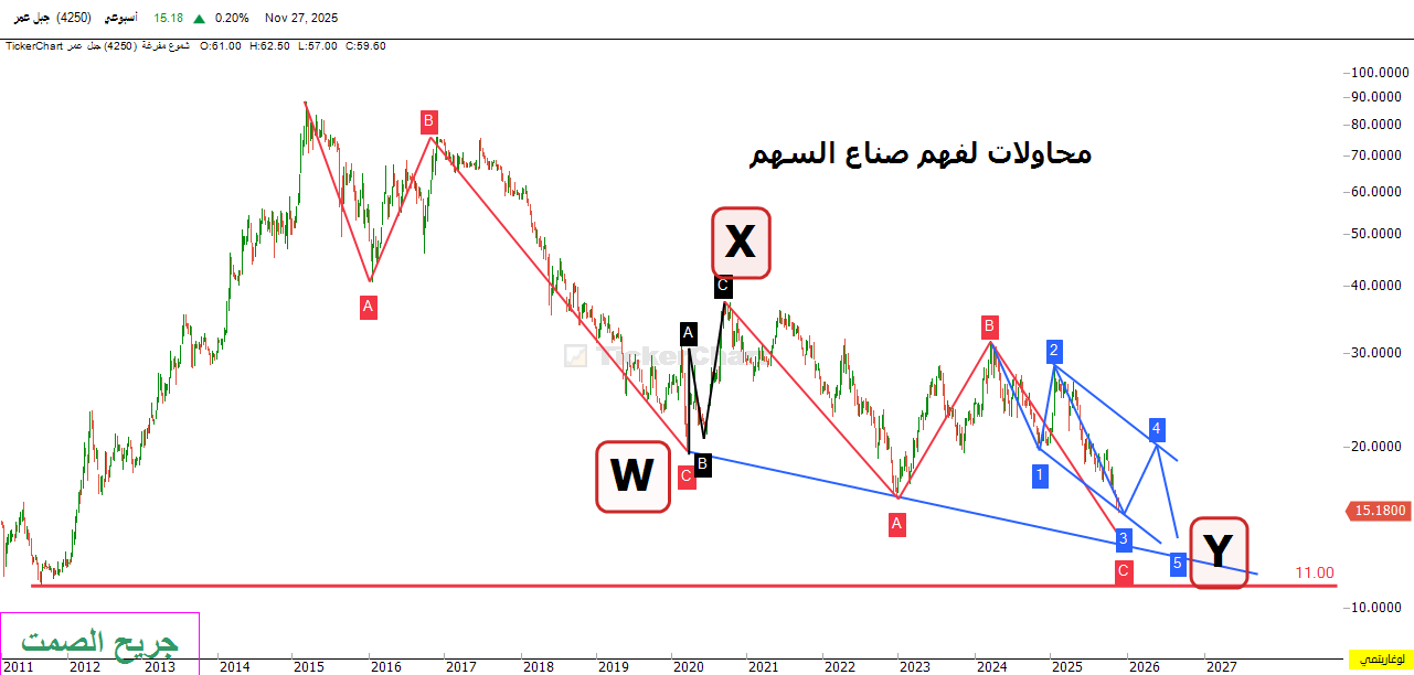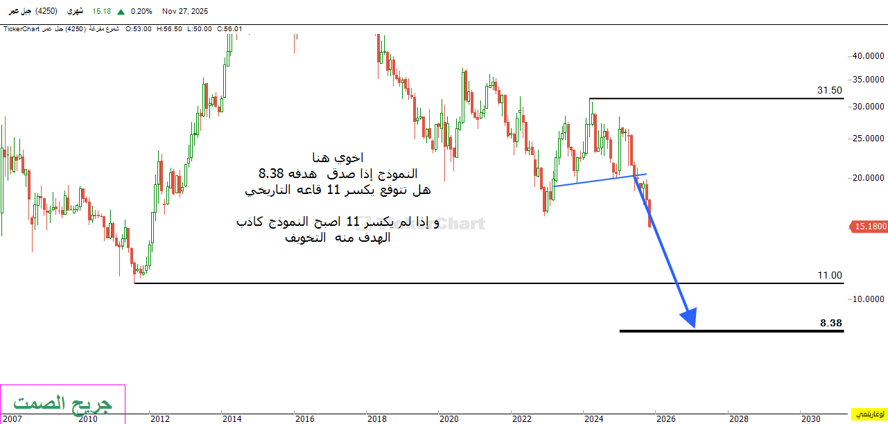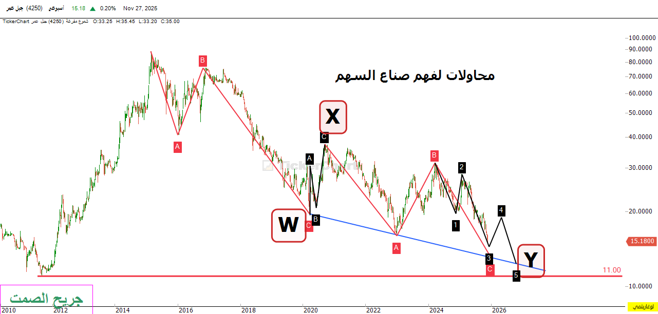 والذي نفسي بيده أنني هذا ما أميل له قبل طرح شارتك أن يحقق السهم قاع تاريخي