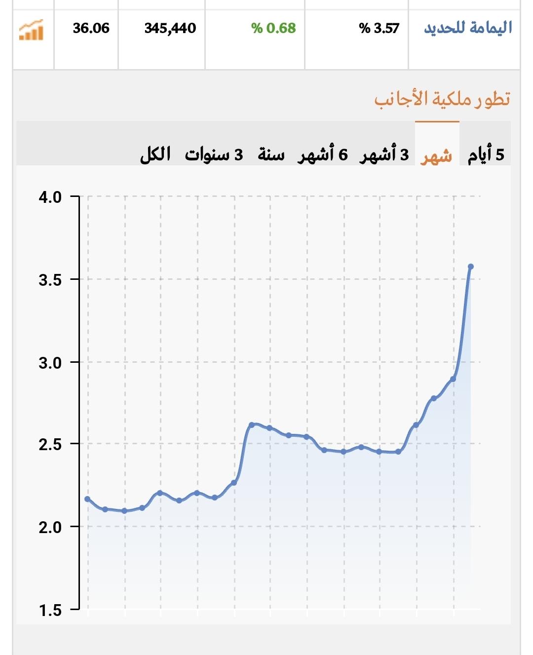 شراء المستثمر الأجنبي ساهم في الإرتفاع الذي قارب النسبة الأثنين الماضي