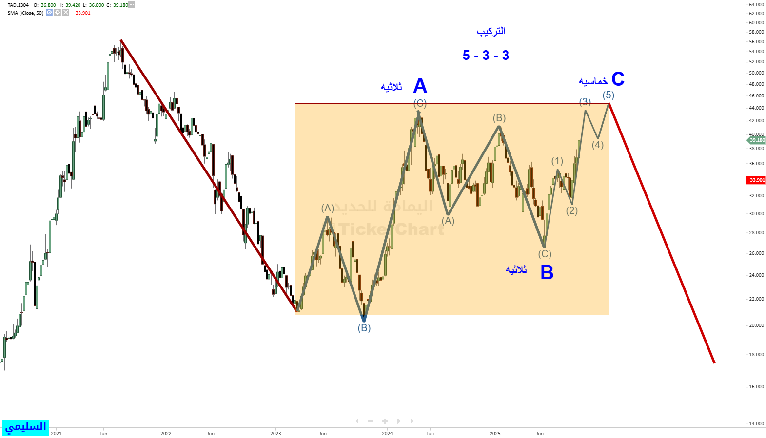 سبق وان قلت الموجه الهابطه من اعلى قمه له خماسيه وهي a