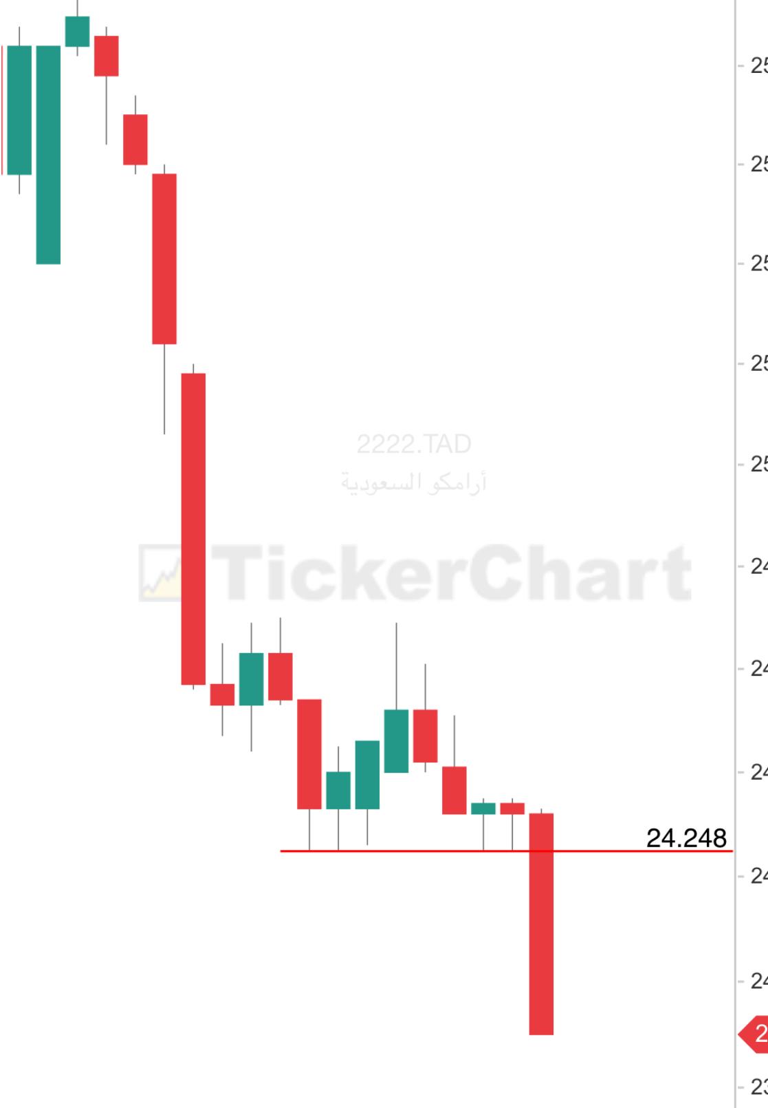 ارامكو هابط اسبوعي وحقق هدف الماسر فلات تنكن عند 25.3 جعلها المسار اليومي تمتد عند 25.72 وانتهت بشمعة يومية سحب سيولة في قمة توافقت مع اربع اسابيع شموع دوجي سلبية فرجحت الهبوط بل