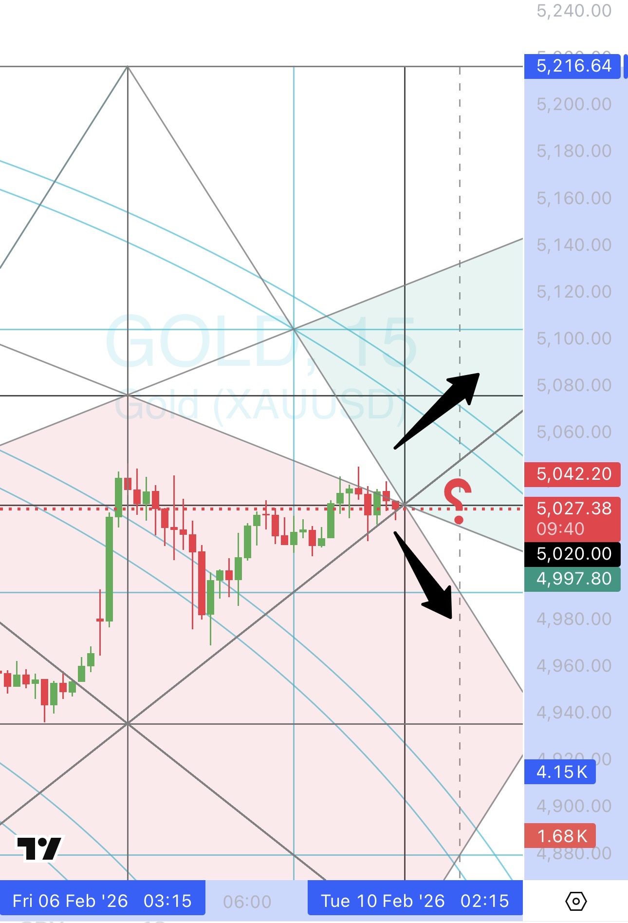 الذهب حالياً صعد الى 5047 وعكس الاتجاه عند خط المنتصف العمودي لمربع جان فاصل ربع ساعة وهو فاصل زمني