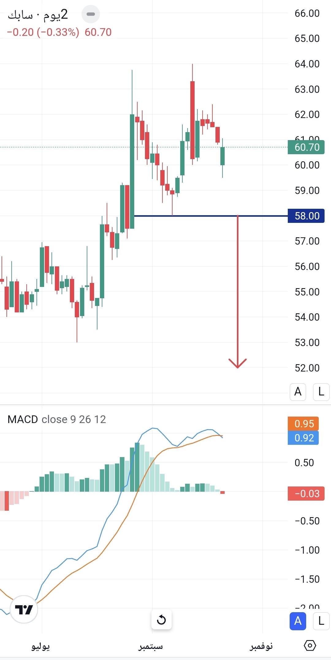 اعلم اخي عضو المنتدى والزائر الكريم ان ما اقوم به شخصيا وجميع محللي المنتدى هو تحليل فني بحت مبني على توقعات فنيه تصيب وتخطي يمكنك الاسترشاد بها وليست دعوة للبيع أو الشراء وقرارك يخصك تتحمله انت فقط وليس أي من المحللين او المنتدى