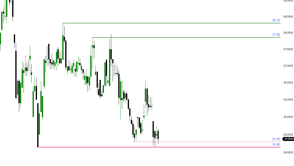 المسار الاسبوعي الهابط قد اقترب من الوصول اليه ومتوقع ارتداد قرب 32.28