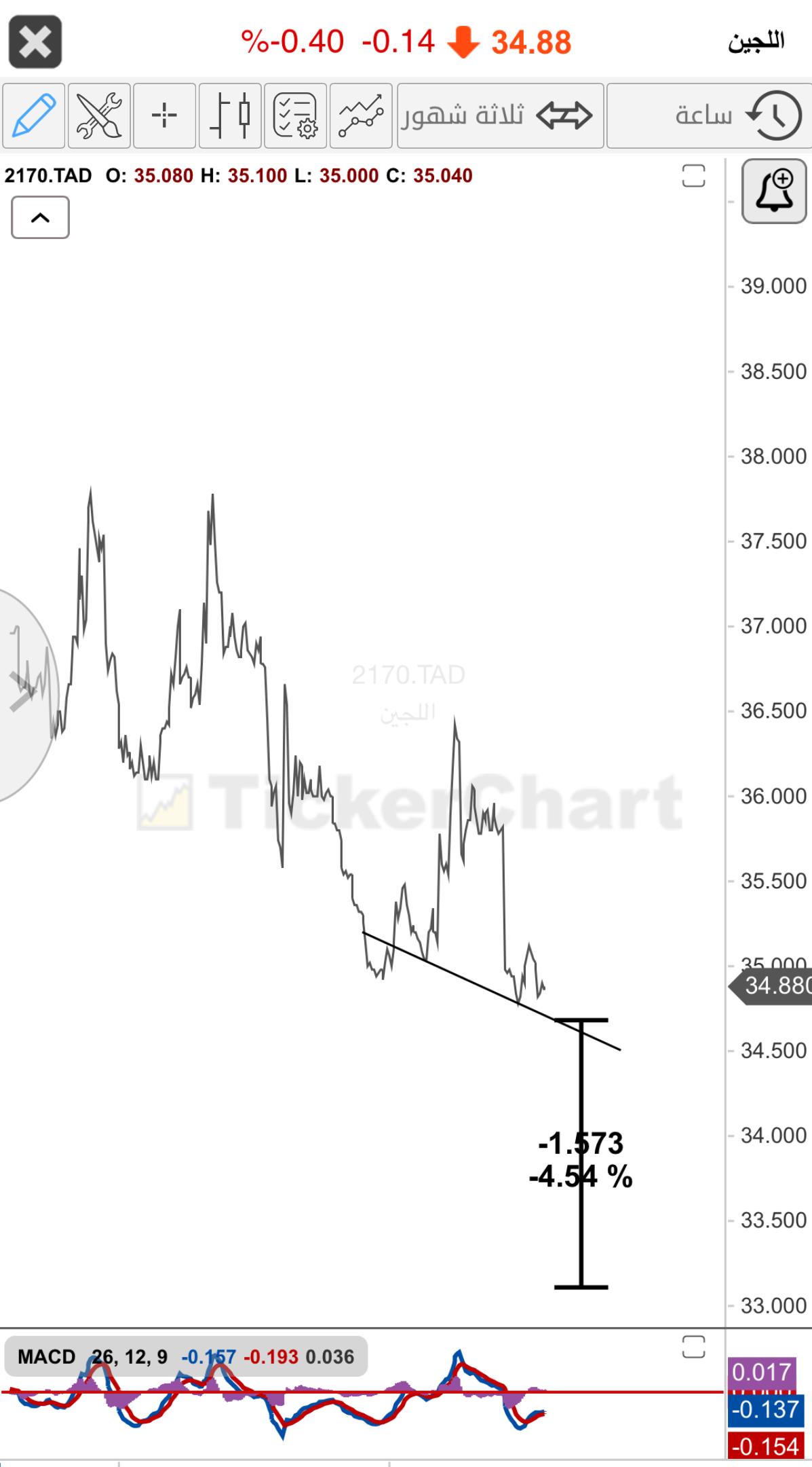للأسف عدم قدره السهم على تجاوز 37.80 و 38.30